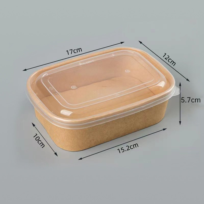 ले जाने के लिए चौकोर कागज कटोरा ढक्कन के साथ डिस्पोजेबल कस्टम 500ml 750ml 1000ml